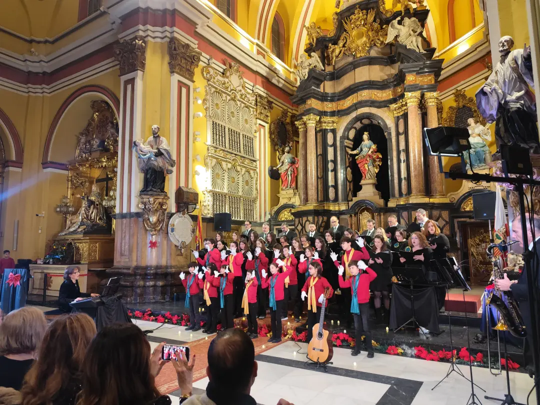 La Iglesia estaba colmada de público que, cuando escucharon los primeros acordes del órgano de tubo con unas melodías saliendo del saxo y el trombón, no dudaros en girar sus cabezas para buscar el sonido. Las sonrisas en sus caras se dibujaron cuando vieron aparecer a nuestros niños, que tiernamente con velas al son del pandero y las flautas de pico iban entrando a compás por el pasillo central.